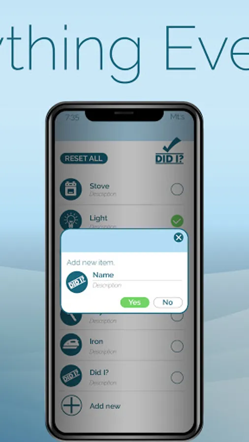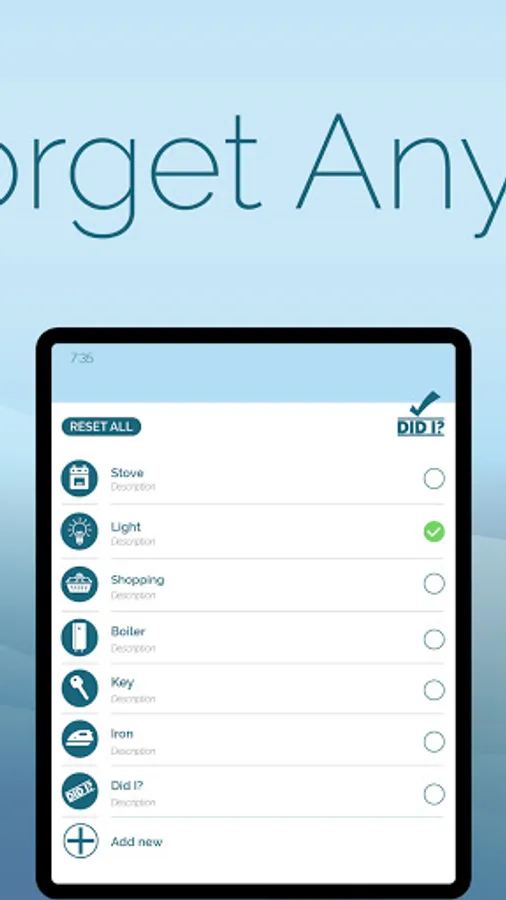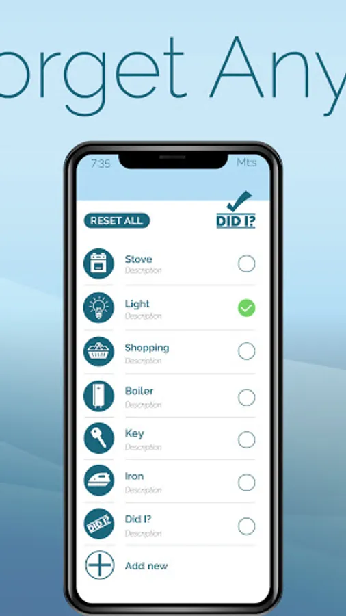 Did I Check? can help you make sure that you unplugged the iron, turned off the TV, dishwasher, cooker, or brought a wallet.
