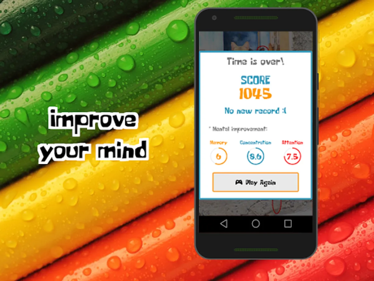 This game helps to improve the mental capacity. In each individual game, you will be able to know how much your memory, your concentration and visual attention have improved.