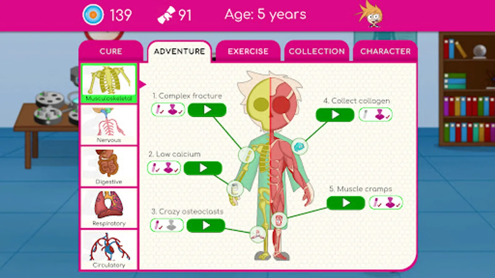 Human Body Adventure is an educational video game for kids from 6 years. Improve your knowledge of the anatomy of human body and its systems: musculoskeletal, circulatory, respiratory and more!