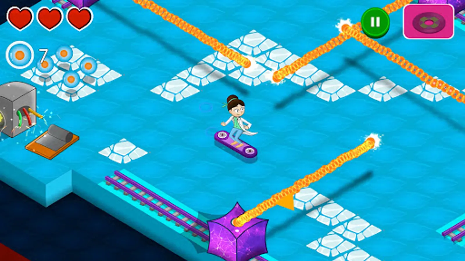Hold on to the nanoskate to slide through the human body systems and save Finn, but remember, you will need to get the nanobots solution to heal him. Get them by solving fun science challenges across the body systems: musculoskeletal, digestive, circulatory, respiratory, nervous… overcome them all to save your best friend… and the world!