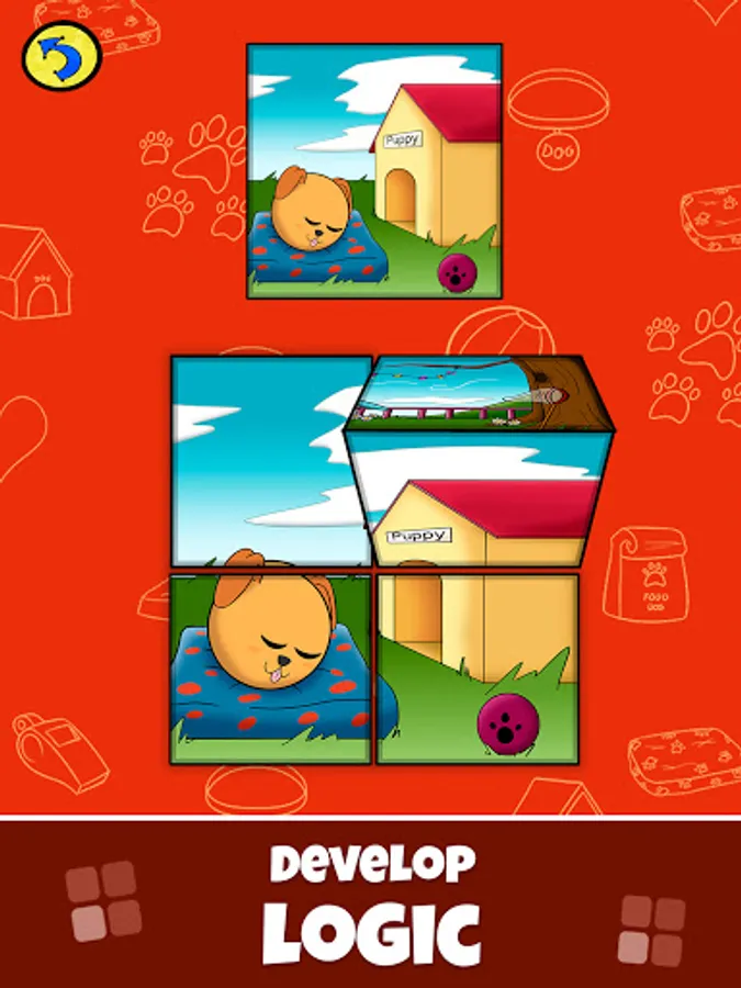 In those learning games, preschoolers must complete the image by ordering the sections according to the letters of the alphabet in capital letters.