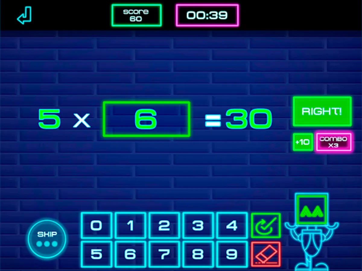 Taking just a few minutes out of your day to play with this app will allow you to improve your calculation and adding up skills while beating your own records and scores, and your parents can follow up your progress in each table.