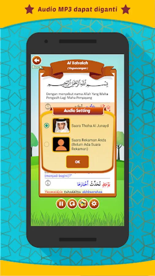 • Each audio letter in Juz Amma can be replaced through voice recording menu.