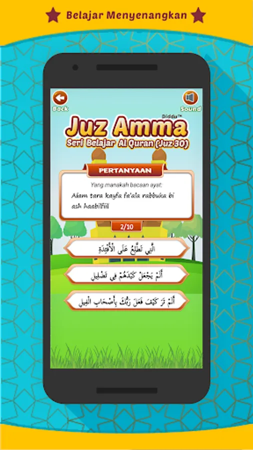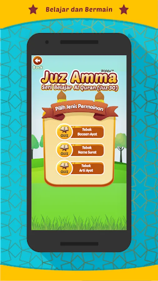 • There is a game menu for evaluating children's memorization level which consists of Guessing Verse Reading, Guess the Name of the Letter, and Guess the Meaning of The Verses.