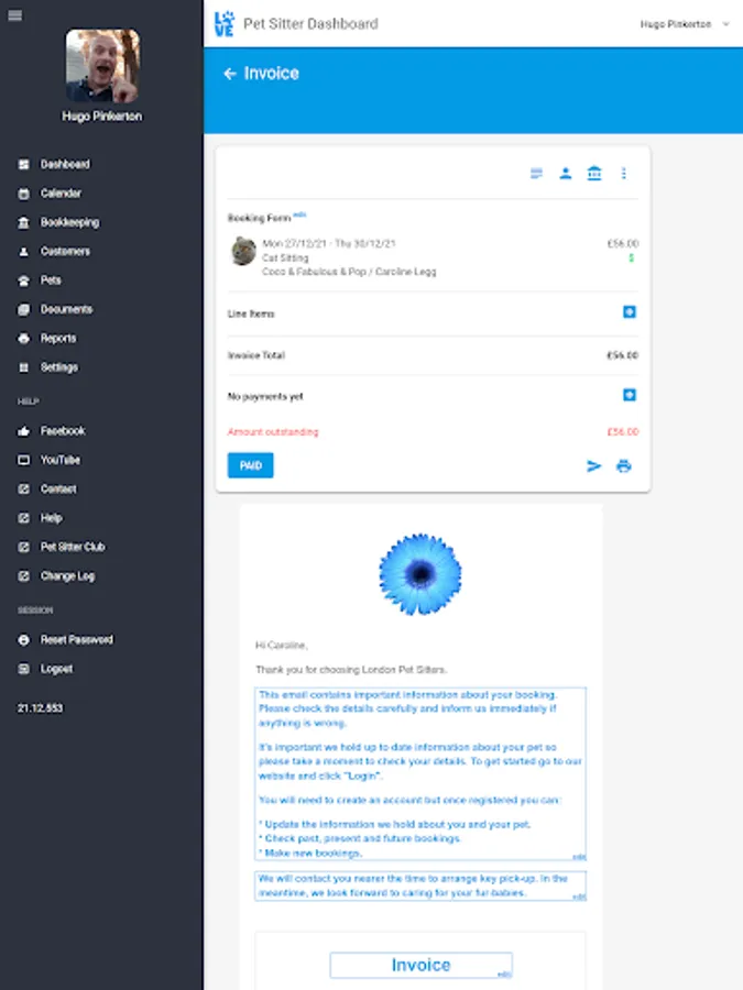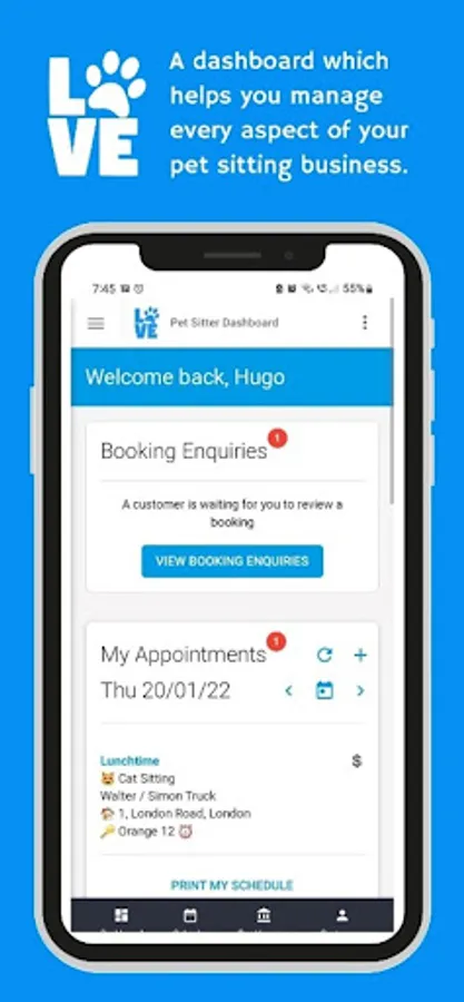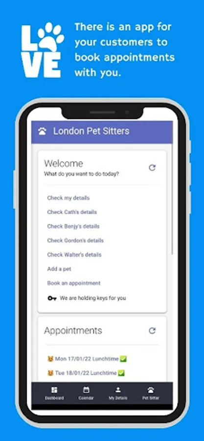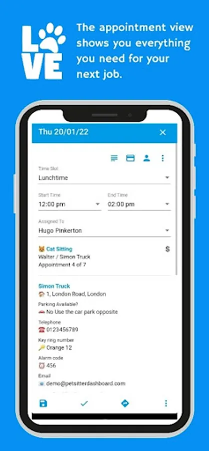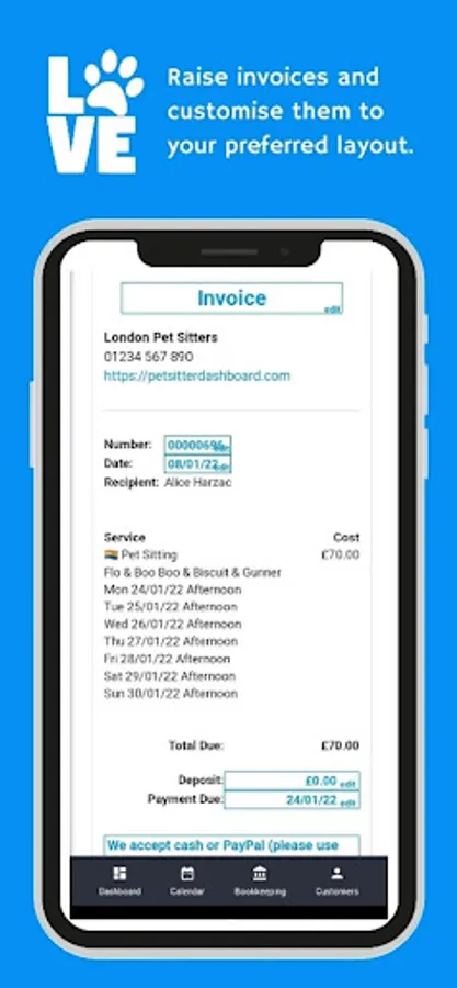 Using the app will save you time and keep everything organised, from appointments to invoices. You can manage every aspect of your pet business, including: