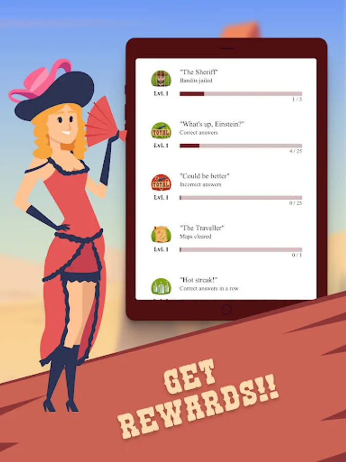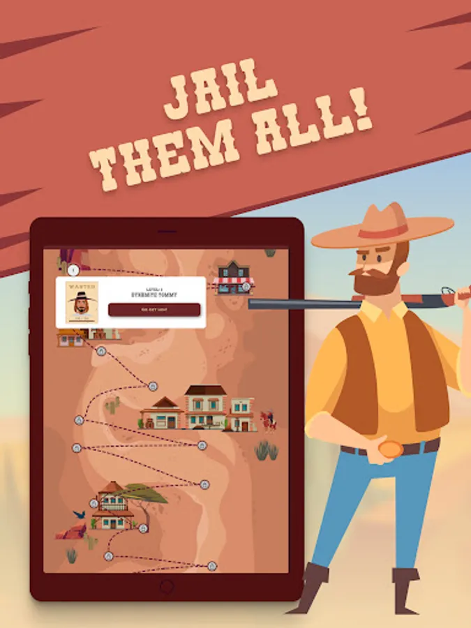 Become the fastest gunslinger in the West with this action-packed trivia game! Test your wits and answer the questions correctly to outgun filthy bandits,sending them to jail to win rewards and prizes.