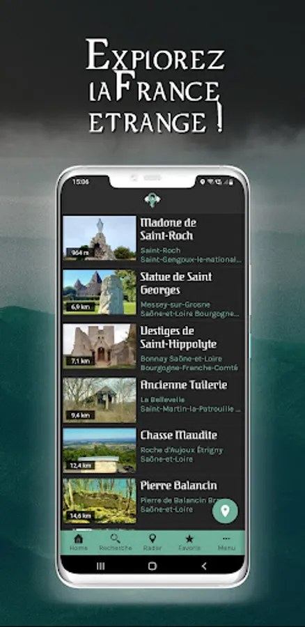 Thanks to its Radar function, the application reveals strange places near your position and tells you how to get there.