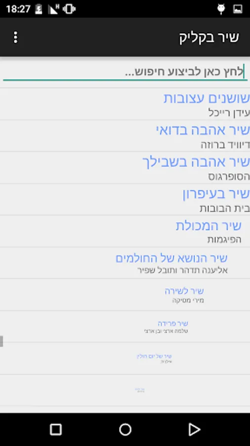 Subjects song application is an application designed to centralize hundreds of songs in Hebrew and English!
