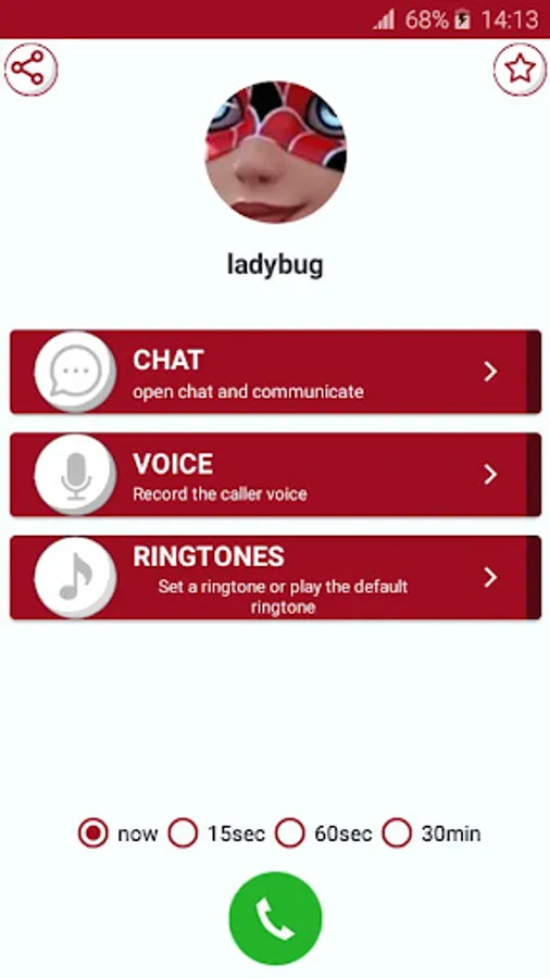 ladybug calling is new games call that help you simulate receiving phone call me from your favorite character. It’s comic app to enjoy with your friends look like real call. laughing with your friends with a tap