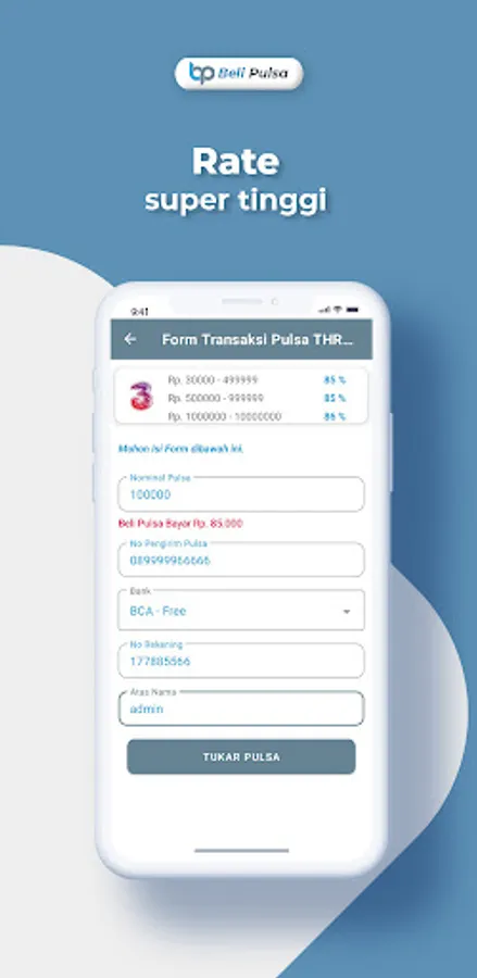 Beli Pulsa is an application that converts credit into money through a bank account with free admin fees or e-wallet such as Dana, Ovo, Gopay, Shopeepay, Linkaja.