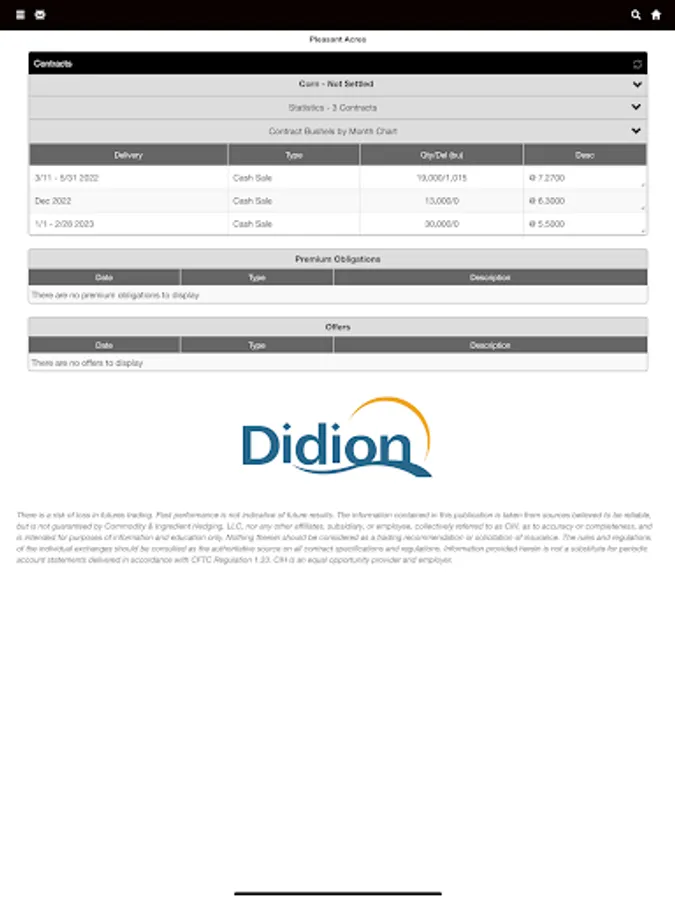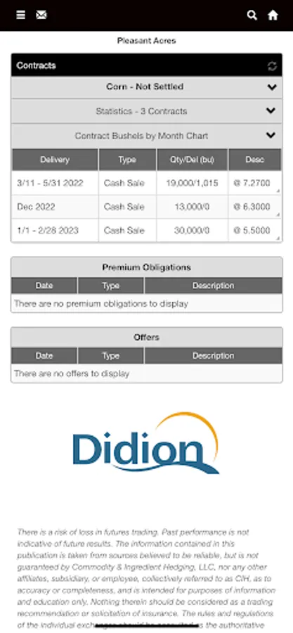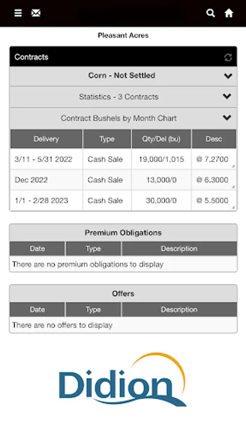 The Didion app is an essential mobile solution that connects your operation to your grain facility, providing real-time, actionable information to help you manage and grow your business.