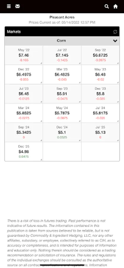 Futures: See Grains, Feed Livestock, and Ethanol futures listed in order of your preference