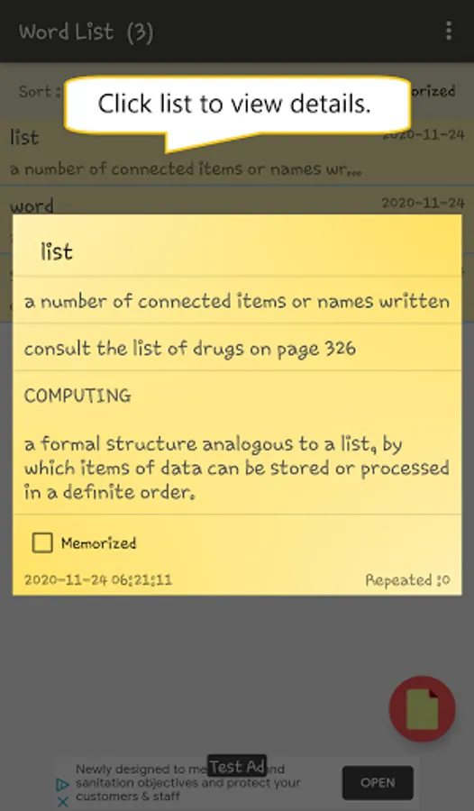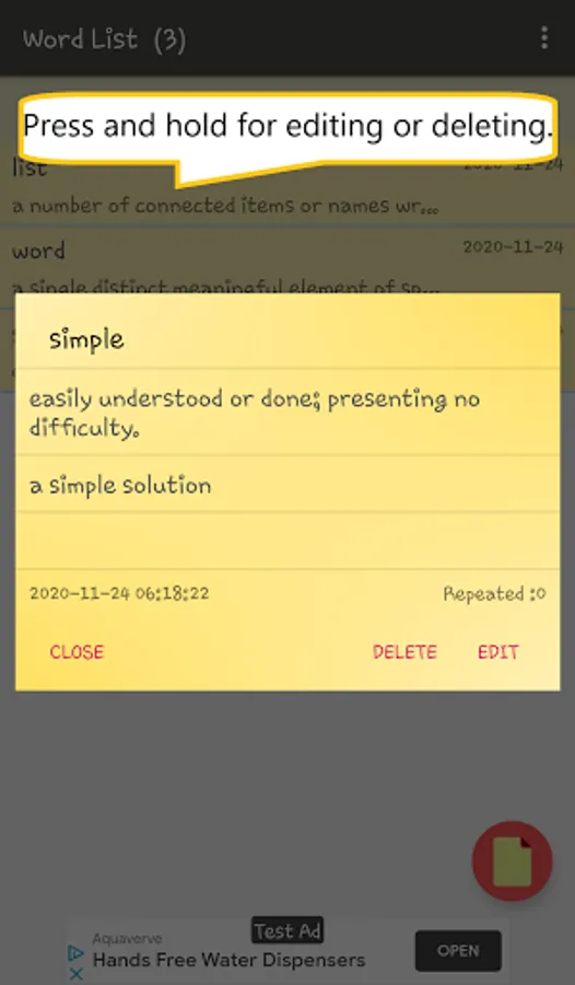 - The number of attempts to save again is recorded. It indicates that the word appears frequently but has not been memorized.