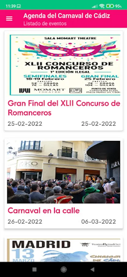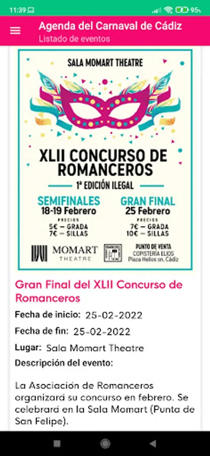 In short, all the key dates to enjoy the Cadiz carnival and everything georeferenced so you don't get lost in the city. Click on the icon of each location and your phone will guide you to the place of the event. That easy.