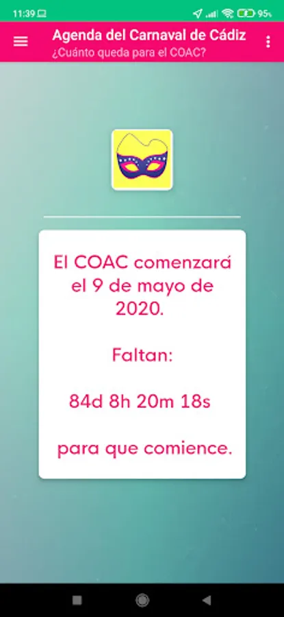 Cádiz Carnival Agenda 2023 of International Tourist Interest. Here you can keep up to date with all the events in the city of Cádiz during its carnival, especially COAC 2023. The application has a countdown timer so that you know at all times how much is left before the Official Contest of Groups of the Carnival begins. Cadiz Carnival..