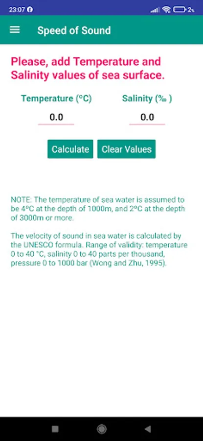 For now, the tools available on the "Ocean Tools: Marine Science" app are: