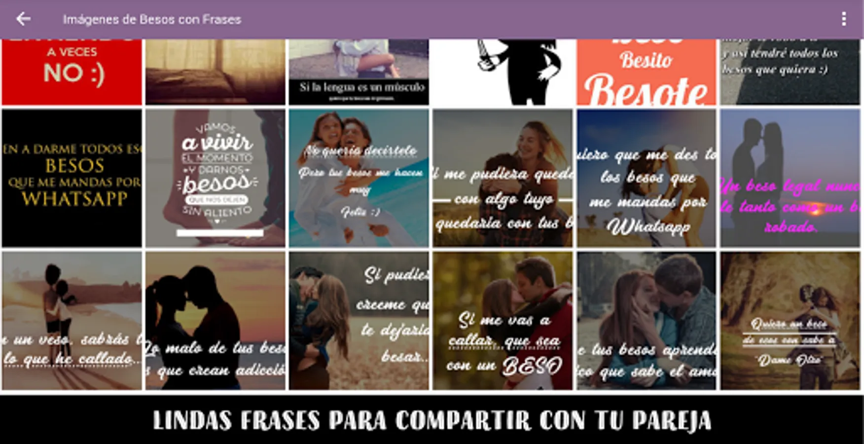 We have the best Stock Kisses so that you can share with people you love most on social networks. Share this cute images de Besos phrases with your partner that you love so much. These are some of the features of the application.