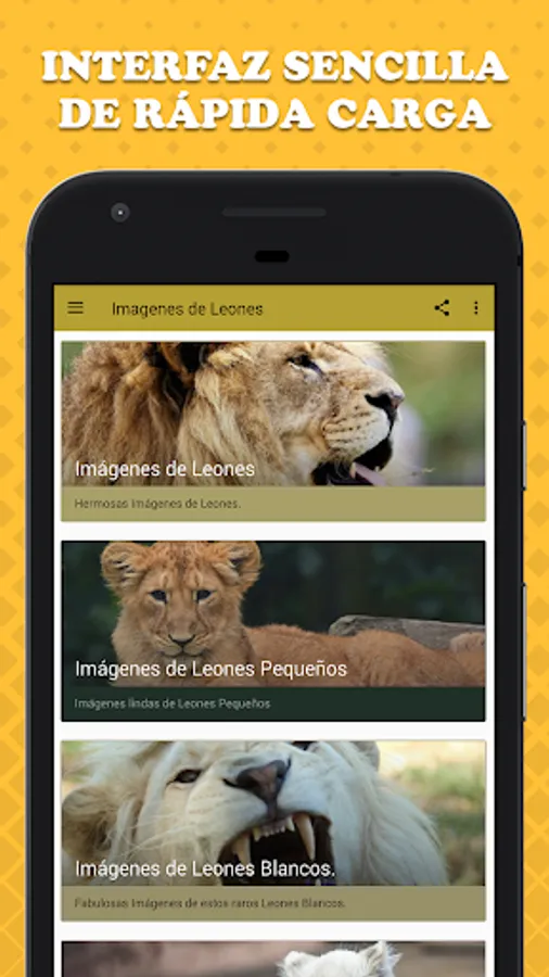 We have the best Lions Images so you can see how amazing these animals are. The lion is considered the King of the Jungle due to its great strength and agility, and in this App, you will be able to see it from close with our great Lions Images that we have for you. You will also see your puppies that are very tender.