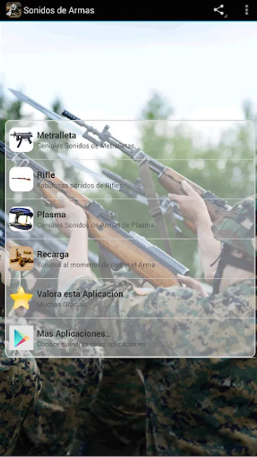 From already thank you for downloading our Gun Sounds application and hope you like a lot, if so please let him qualify with 5 stars so you can motivate us to do many more applications. We hope you enjoy this application: D.