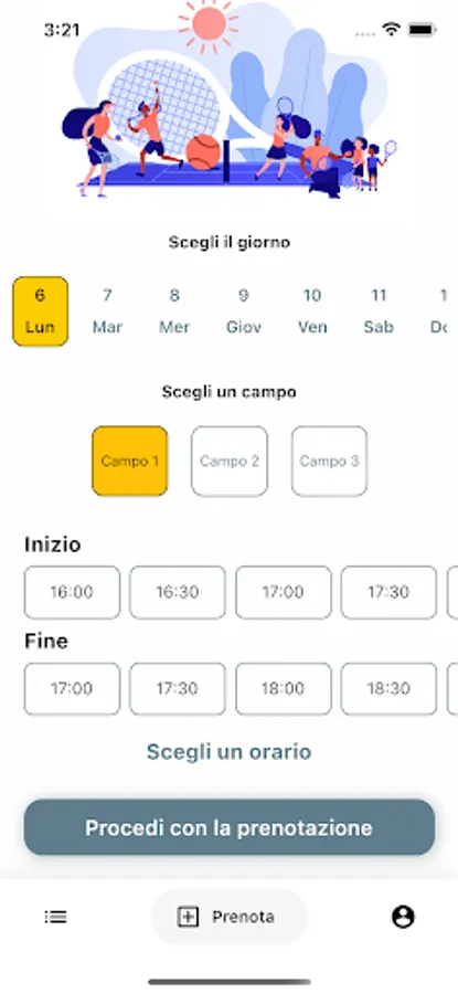 From the application it is possible, after logging in, to reserve the fields, view and possibly delete the reservation.