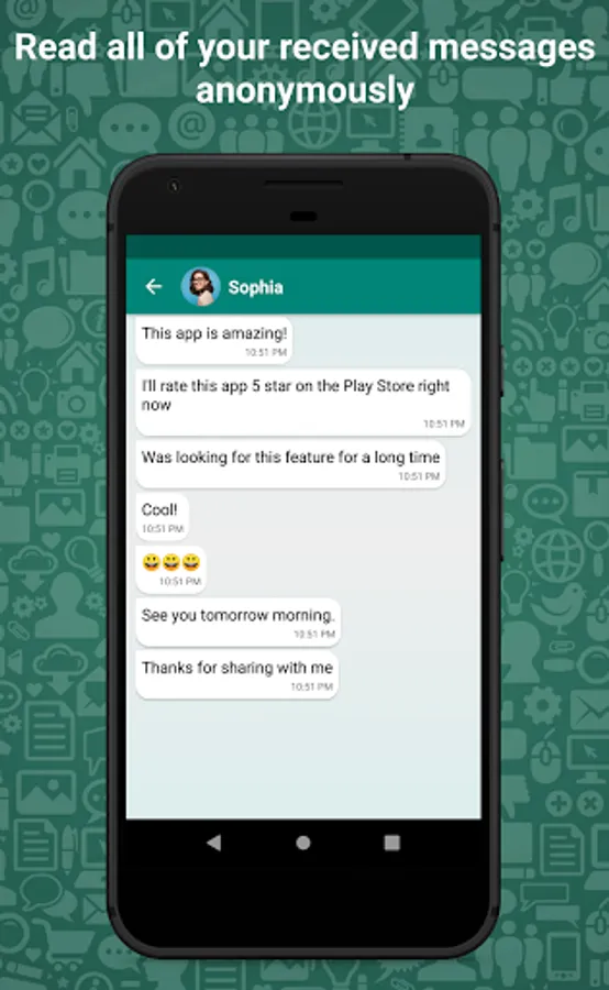 😃 If a friend wants to view messages without notifying the person who sent them or read deleted Whatsapp messages, please share this app with them and make them happy too!