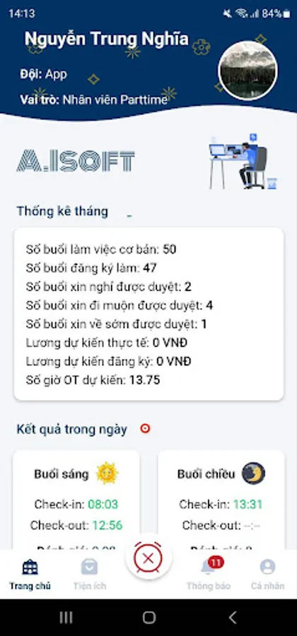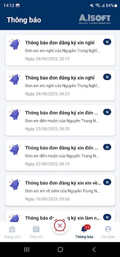 Manage the schedule of applications and attendance within the company AISOFT
