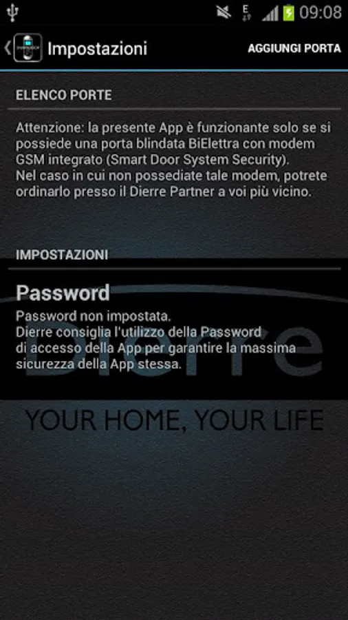 Dierre recommends the use of the password to access to the App to guarantee its maximum security.