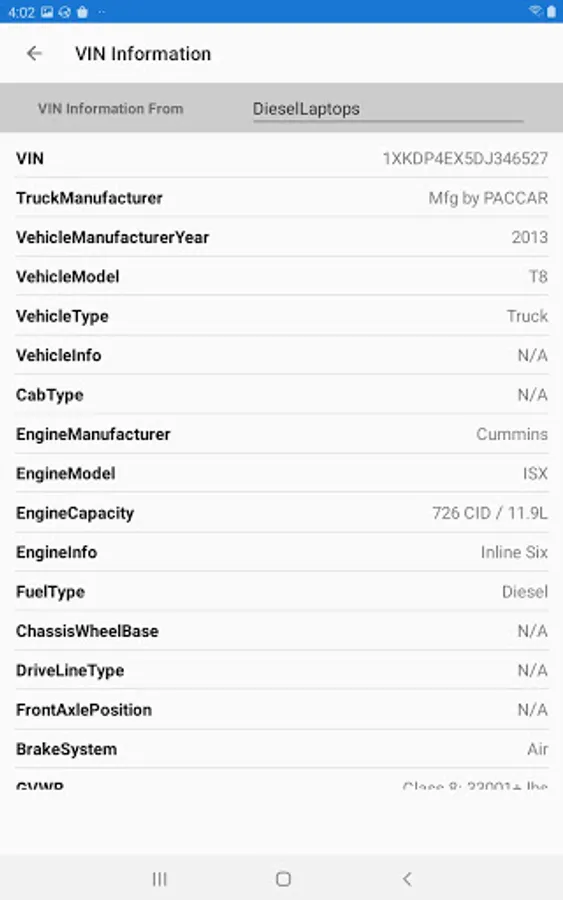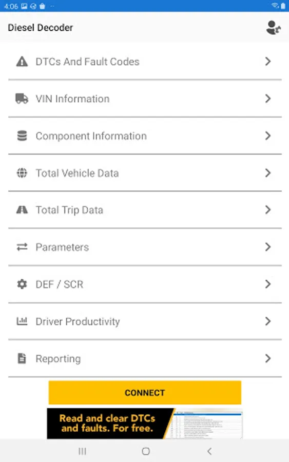 Diesel Decoder is a heavy vehicle and equipment diagnostics tool for reading Diagnostic Trouble Codes, live data, and vehicle information using the blue-tooth Diesel Laptops Diesel Decoder hardware (required). The app can also perform Bi-directional commands such as DPF regens on all medium and heavy commercial vehicles. Diesel Decoder also allows the user to generate Vehicle Health reports that may be viewed, printed, or viewed on the Diesel Health platform. Visit www.diesellaptops.com/products/diesel-decoder?_pos=4&_sid=743c893bb&_ss=r for more information or to purchase the needed hardware.