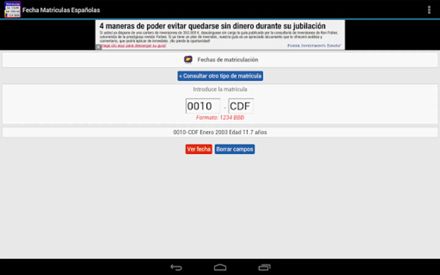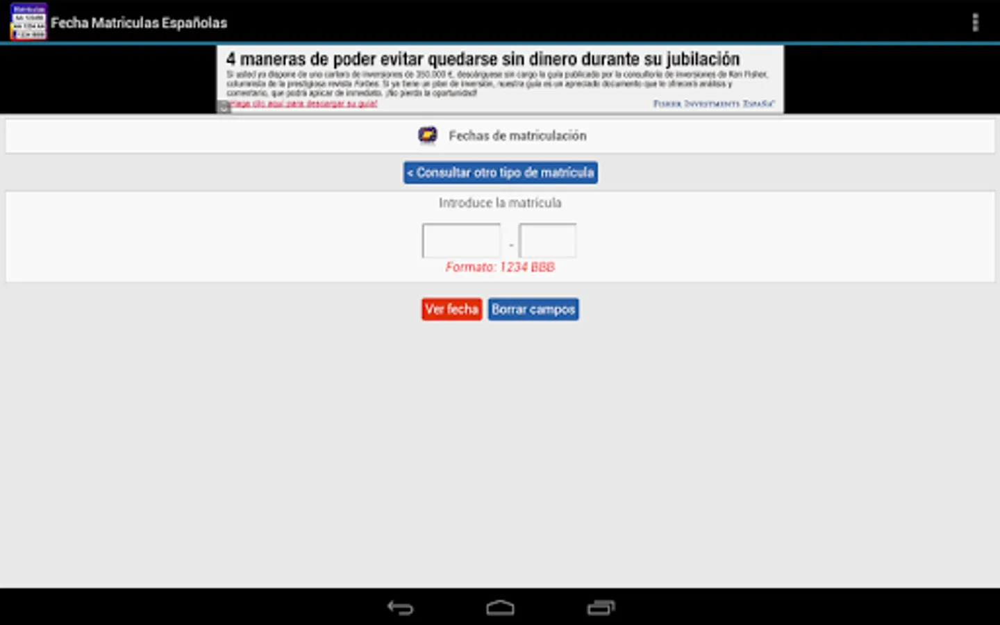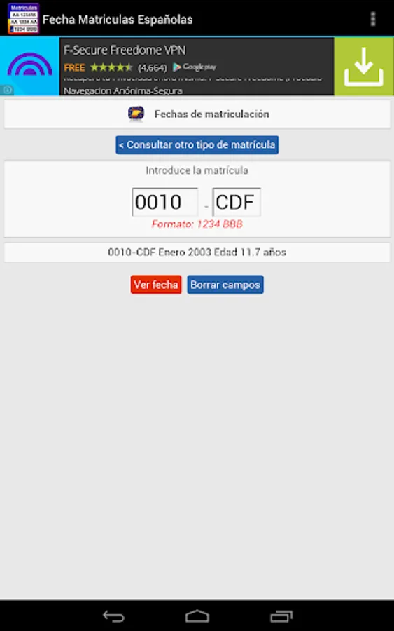 The only free app with all the dates of enrollment of Spain: State from 1900 to 2000, and Europe from 2000 to the present. To date provincial tuition gives the year of enrollment to date month year and European plates.