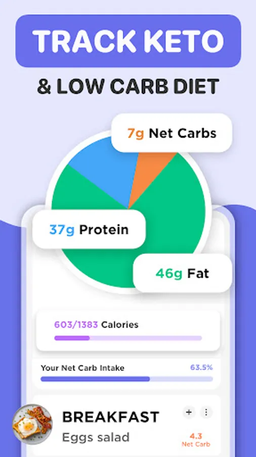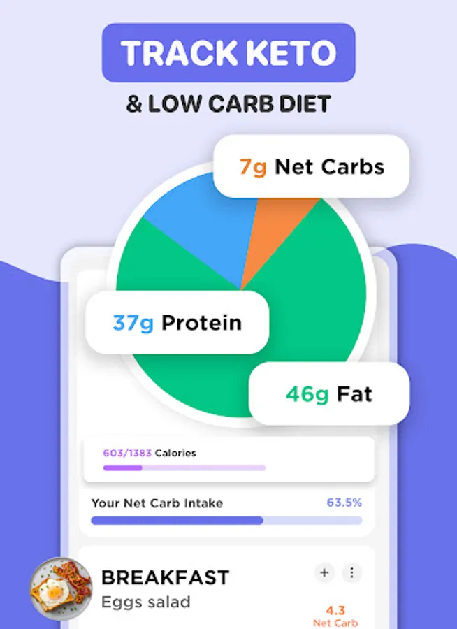 • Carb counter: Track net carbs, macros, and more with our Keto Diet Manager's carb counter