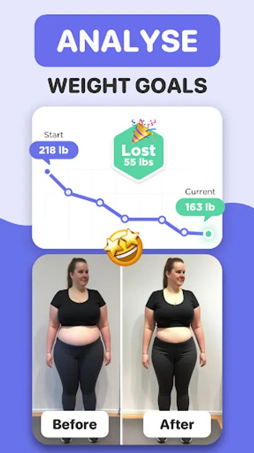 • Calorie counter: Set and achieve goals based on body weight