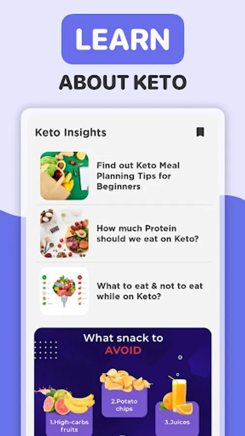 • Keto Macro calculator to monitor carbs, fats, & protein