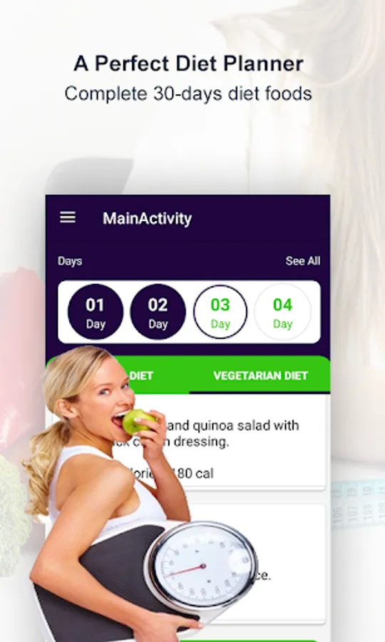 Alike diet apps for women, it's a good idea to learn how to plan your meals after you've lost the initial weight. This eat healthy food app will help you keep the quick weight loss diet once the fixed-menu diet has ended just like diet calculator. With healthy diet apps for women, thousands of people are looking for lose weight tricks which can help them with their ongoing struggle in diet apps for men. Install 7 days diet plan just like the other weight loss apps. All over the world people are looking for some answers which can make the difference between a frustrating struggle to lose weight, and Smooth steady progress. Our offline diet plan is the answer to all your questions because it provides you with two diet plans standard and vegetarian won’t find in healthy diet apps for women.
