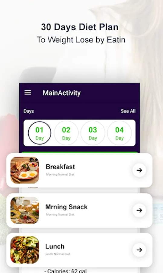 In diet apps for women and diet apps for men; Diet plan weight loss, diet tracker weight loss application provides you with the healthy diet plan there is after careful research on which things can help lose weight plus making you fit and strong at the same time with daily diet plan for weight loss. Checkout the calorie counter using diet app for losing weight with 7 days diet plan. It has complete diet chart for weight loss.