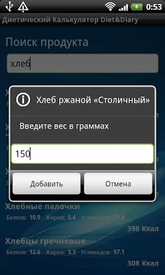 Diet Calculator for Android - free application that allows you to keep a daily calorie count of the food, using a large database of nutritional products, with the option to add their own.