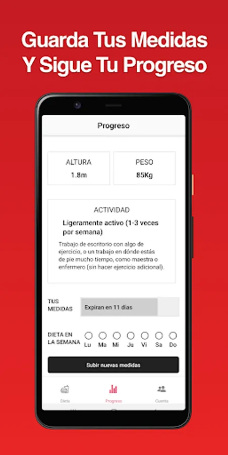 Save your physical measurements and view your progress.