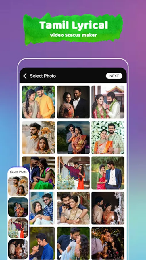 Tamil Photo Lyrical Video Status Maker - Lyrical Song Maker application have choice to select many more images with help of gallery and have all image have option to set it with different different styles.