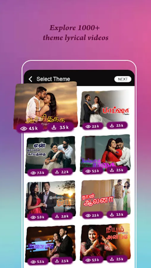 We have large collection of Tamil lyrics status songs that you can choose and create Lyrical Video.