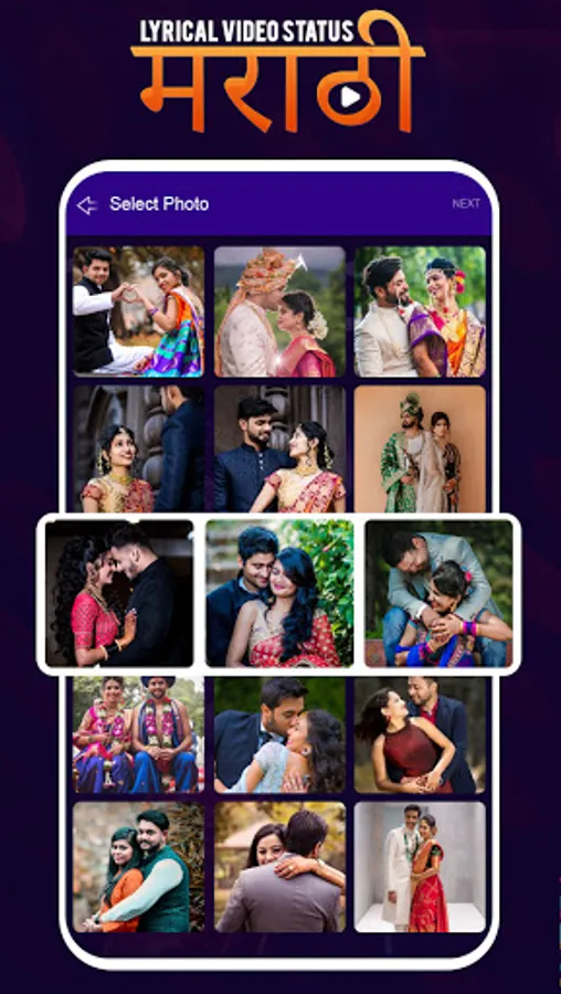 My Photo Marathi Lyrical Video Status Maker has new concept you can make lyrical video of your own beautiful photos. Your favorite photo with lyrical song for whatsapp status makes awesome video status.