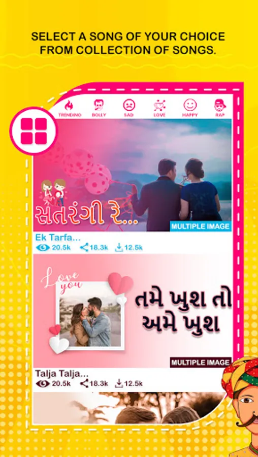 My Photo Gujarati Lyrics Video Status Maker allows you to pick your favorite pictures and add your favorite song lyrics from collection of songs.