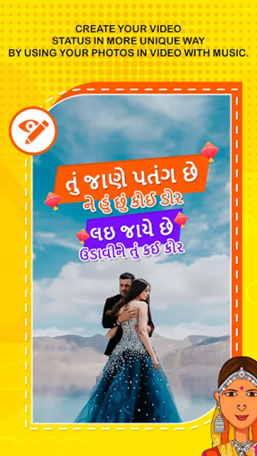 Gujarati Lyrical Video Maker make beautiful Gujarati Lyrics Video with amazing gujarati songs and your Photos. This App enhances your video with amazing lyrical style and animations.