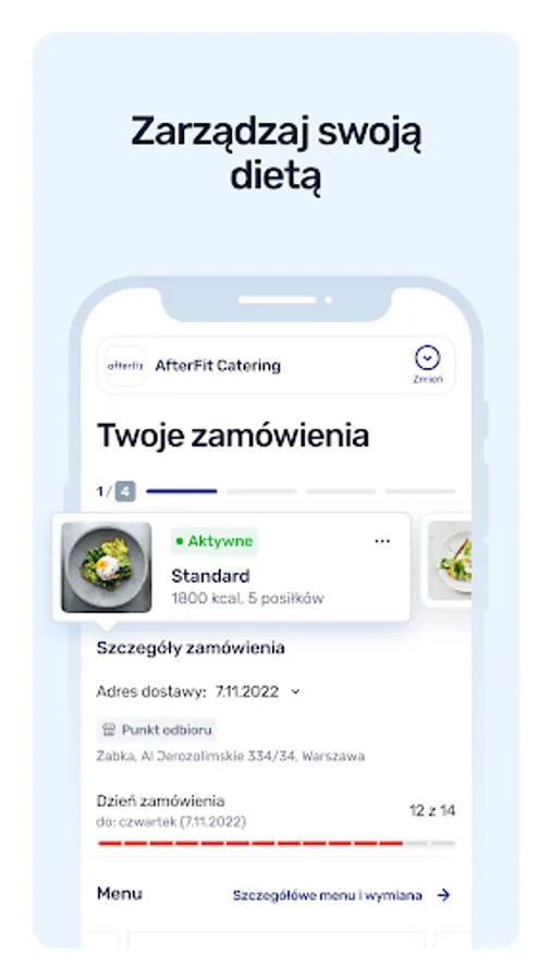 The Dietly mobile app is your center for managing your diet. In a quick and easy way, you can order or extend your diet, check the menu, exchange meals or evaluate individual dishes. Everything you need to know about your diet in one place.