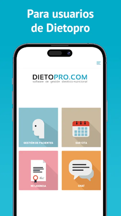 Application that allows Dietopro dietitians-nutritionists to manage their patients and chat with them, as well as make appointments and manage their schedule.
