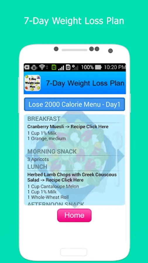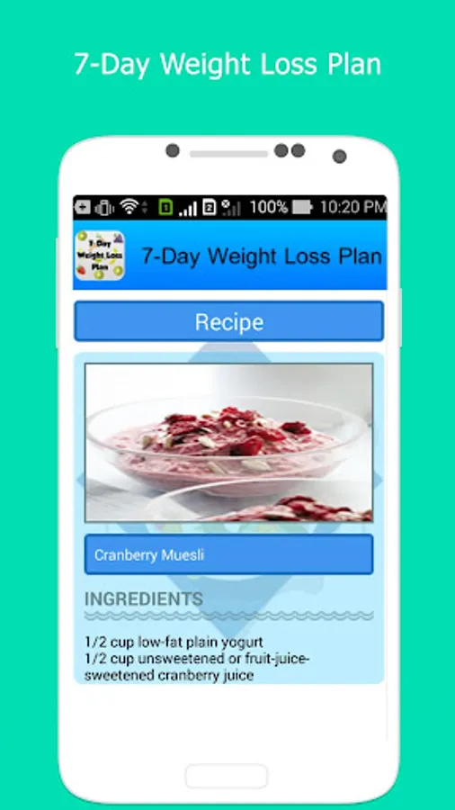 This application show the information about 7-Day Weight Loss Plan. If you want to know how to cooking for lose weight or diet. YOU'VE FOUND IT!!
