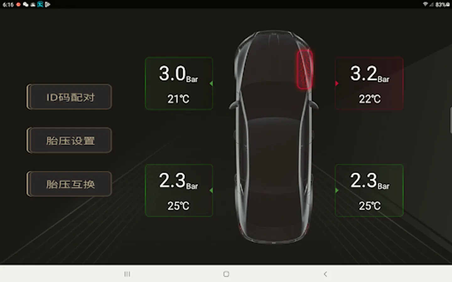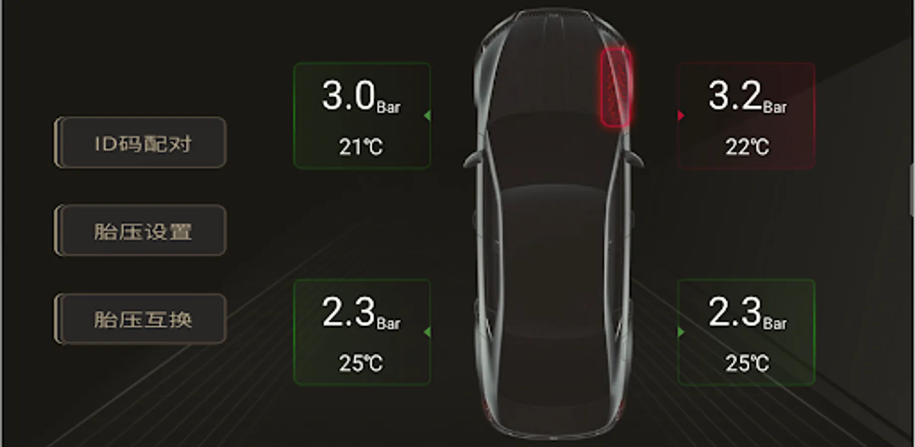 Vehicle tire pressure real-time monitoring software monitors temperature, air pressure, electricity, air leakage, signal, etc.