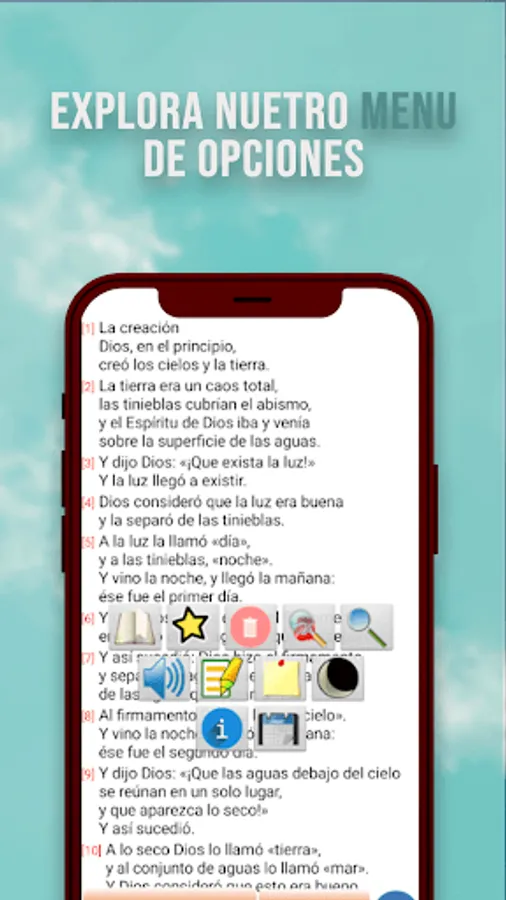 -Puedes guardar tu versículo favorito y compartirlo con tus amigos en las redes sociales.