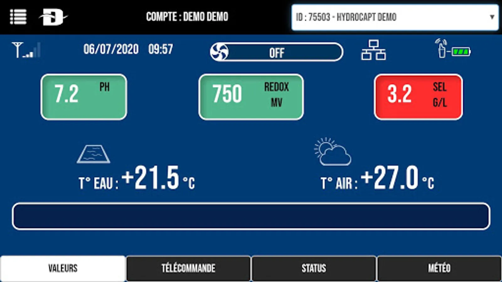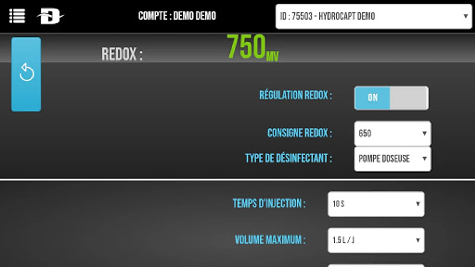 - Measures RedOx (disinfectant: chlorine, bromine, ...)