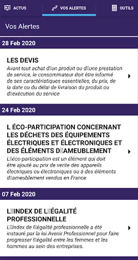In this application you will find practical tools and legislative or event alerts adapted to your needs: