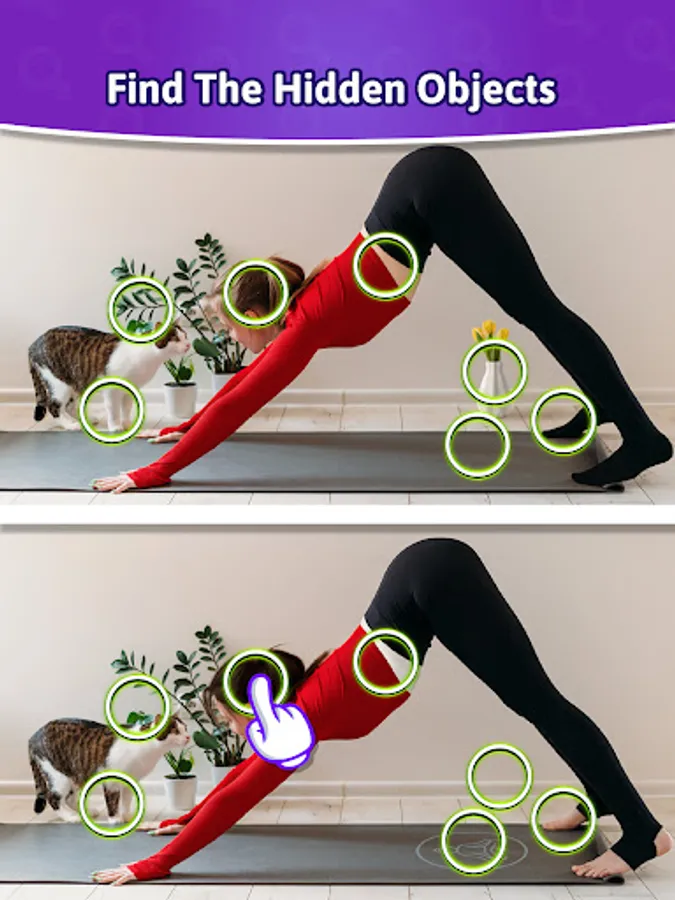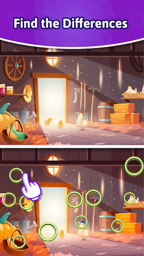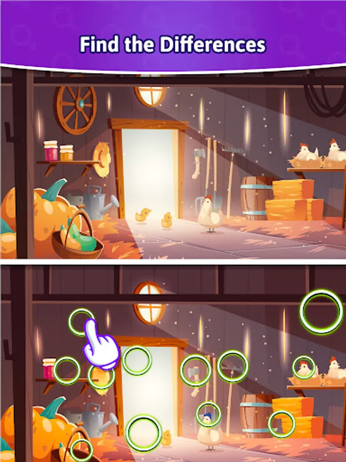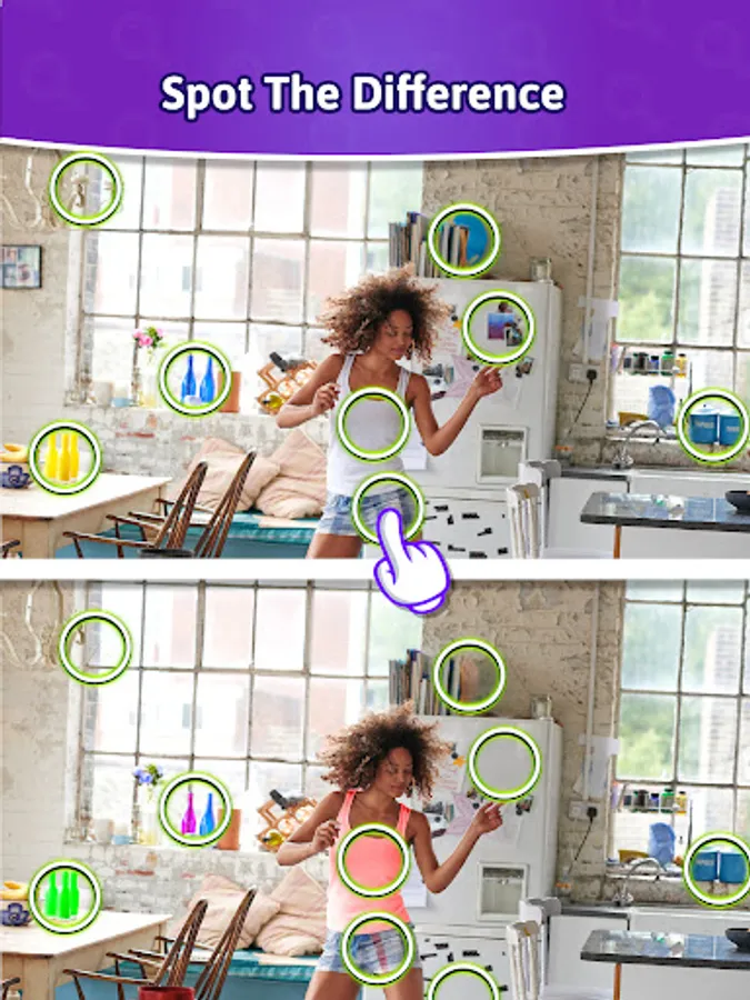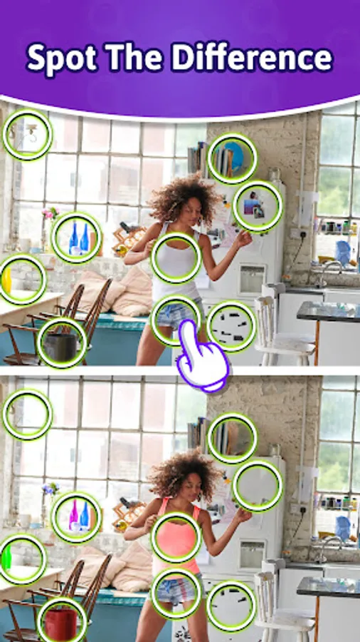 - Spot the difference and tap to highlight the distinct objects.