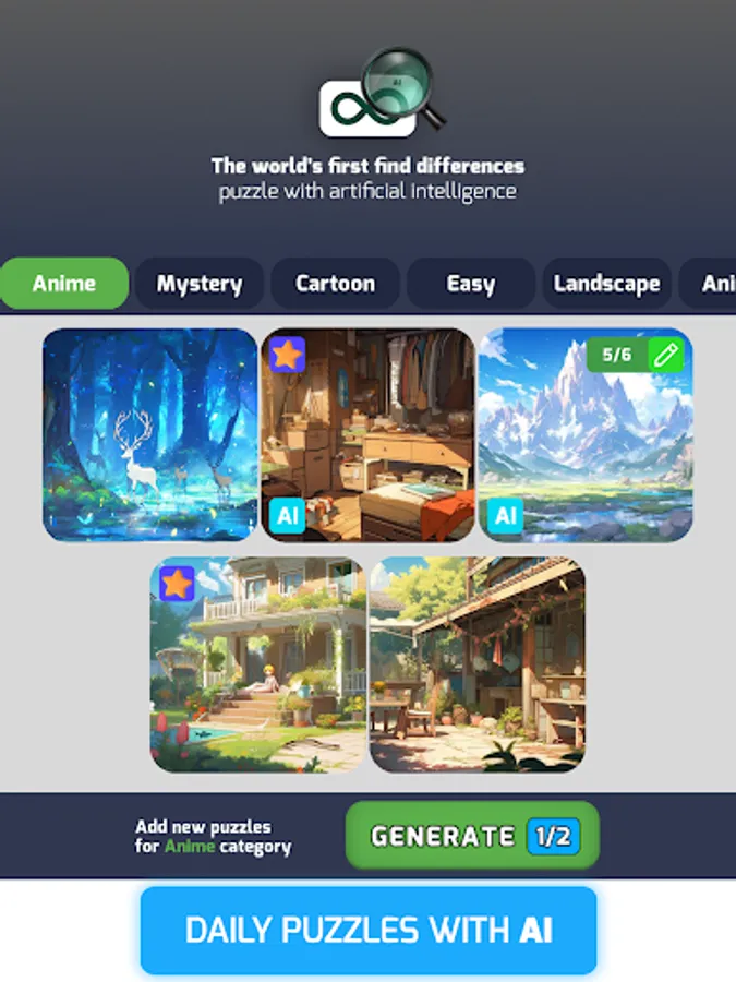 Step into a world of intrigue and detailed observation with "Find Differences AI", a riveting fusion of spot the difference puzzles and hidden object hunts. Crafted with advanced AI technology, it promises endless, intricate challenges designed to stimulate your brain and engage your senses.